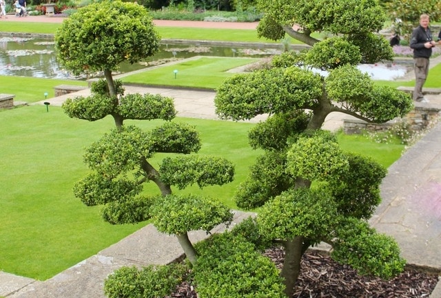 L’Ilex crenata, arbuste persistant de la famille du houx, est parfaitement adapté à cette technique grâce à ses petites feuilles régulières. Appelé aussi houx japonais, il supporte bien la taille et offre une belle structure.