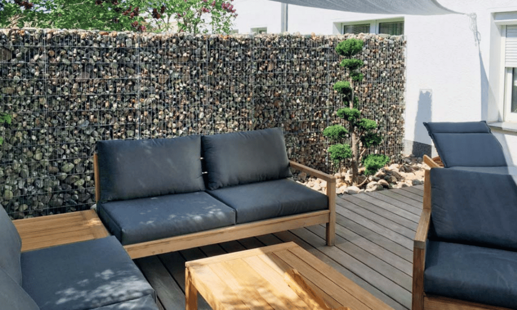 Les gabions, cages métalliques remplies de pierres, permettent de créer des écrans personnalisés. Ils offrent de nombreuses possibilités de tailles, de formes et de couleurs. Sur de longues distances, mieux vaut alterner avec des plantations pour éviter un effet trop massif.