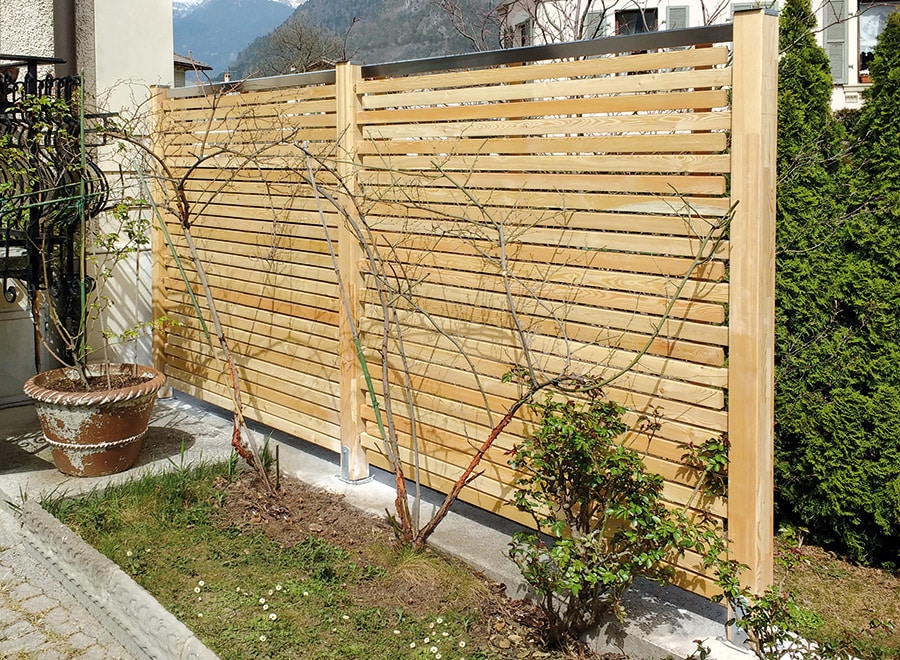Pour les amateurs de bricolage, rien de tel que de choisir séparément poteaux et lames, puis de concevoir sa clôture maison. Espacement des lames, largeur, essence de bois… tout est possible, à condition de sélectionner un bois résistant et traité.