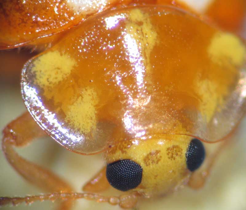 Tête de coccinelle orange : Le pectoral cache partiellement la tête Diversité alimentaire